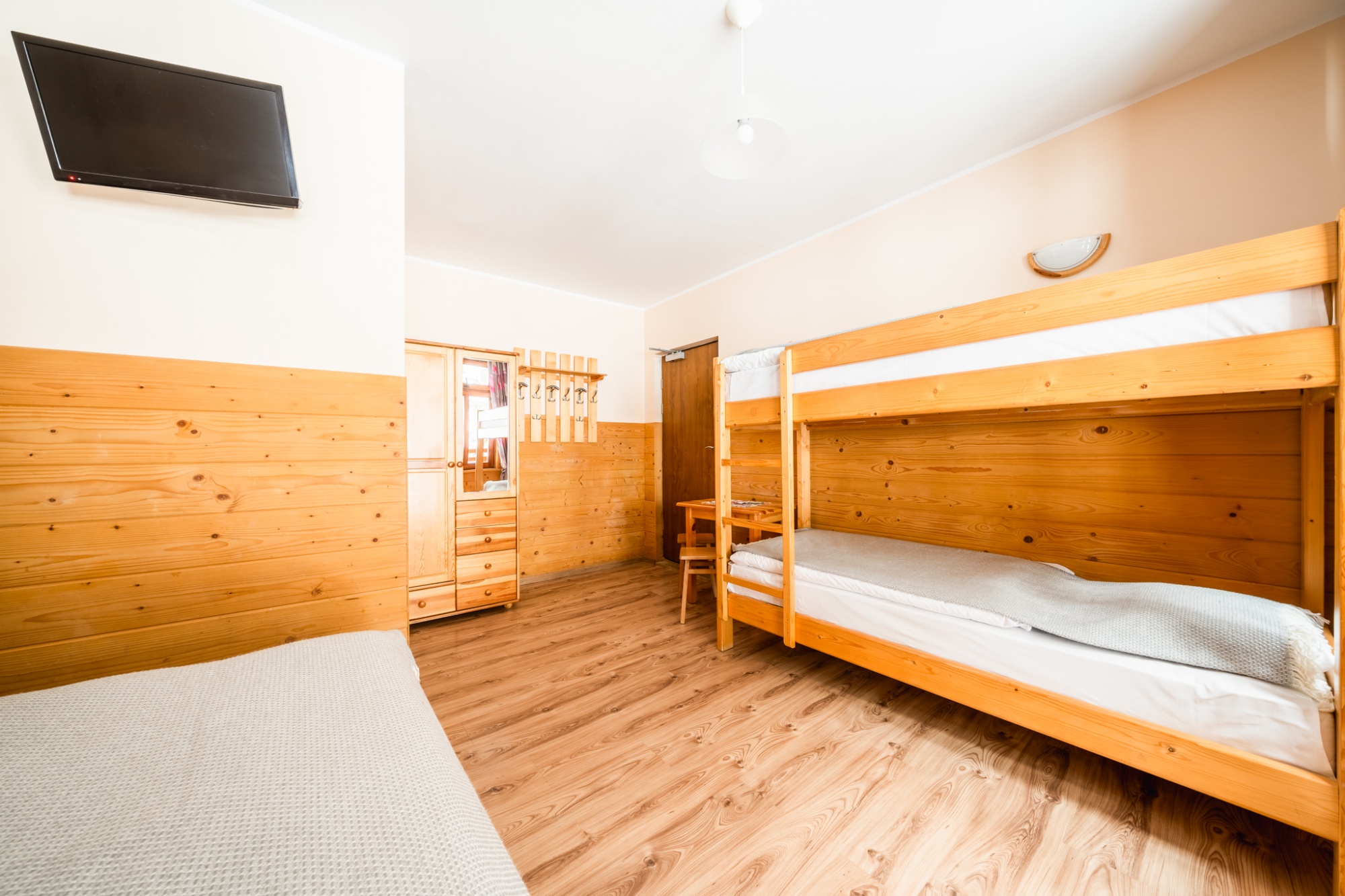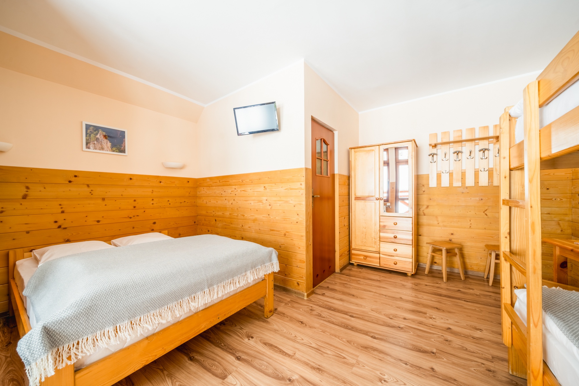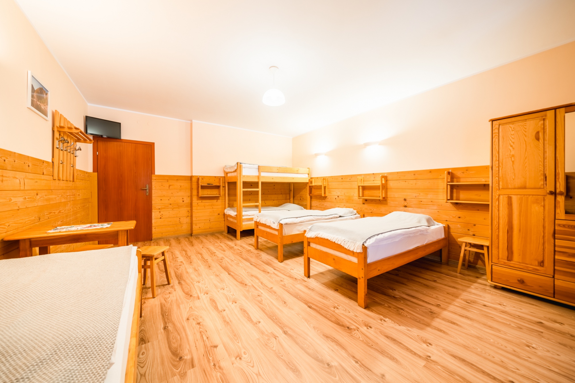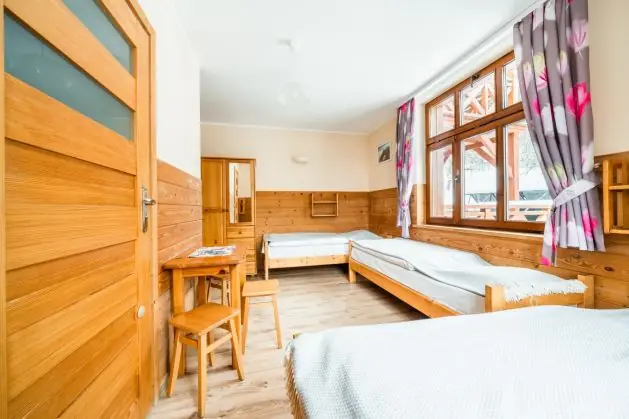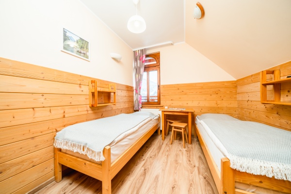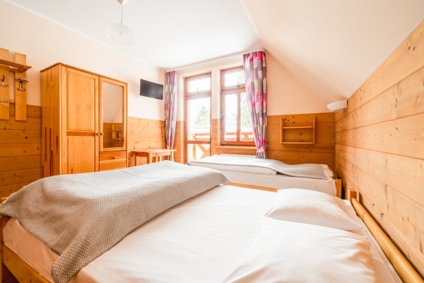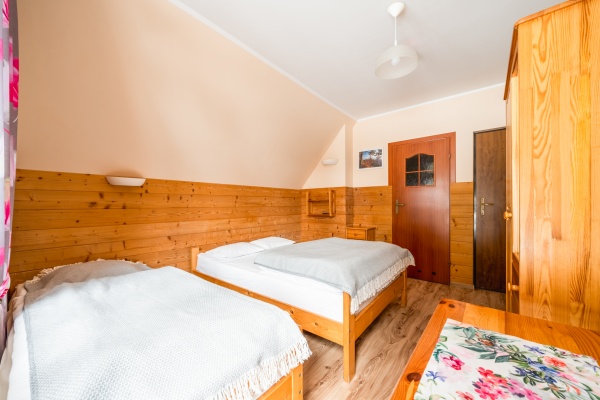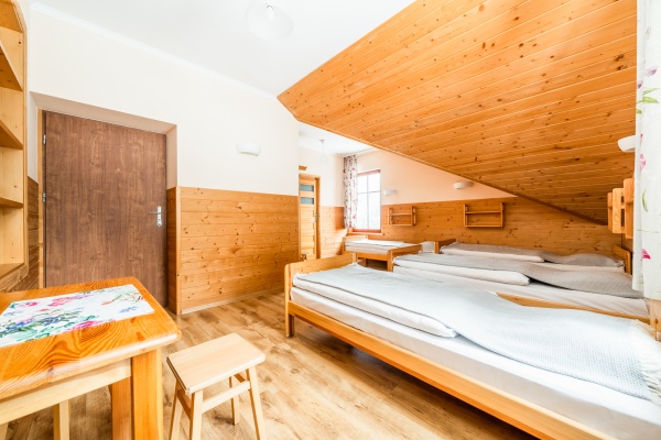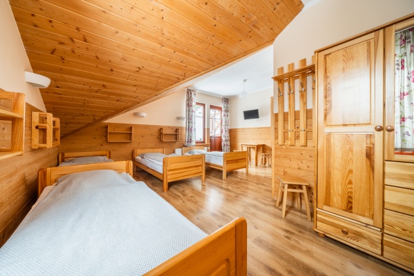 Posiadamy 44 miejsca noclegowye o bardzo wysokim standardzie. Oferujemy pokoje do wynajęcia 2-, 3-, 4- i 5-osobowe. Każdy pokój oferuje przytulne wnętrze wykończone drewnem z telewizorem, większość posiada łazienkę. W naszej ofercie noclegowej jest również kilka miejsc w pokojach, bez pełnego węzła higieniczno-sanitarnego.