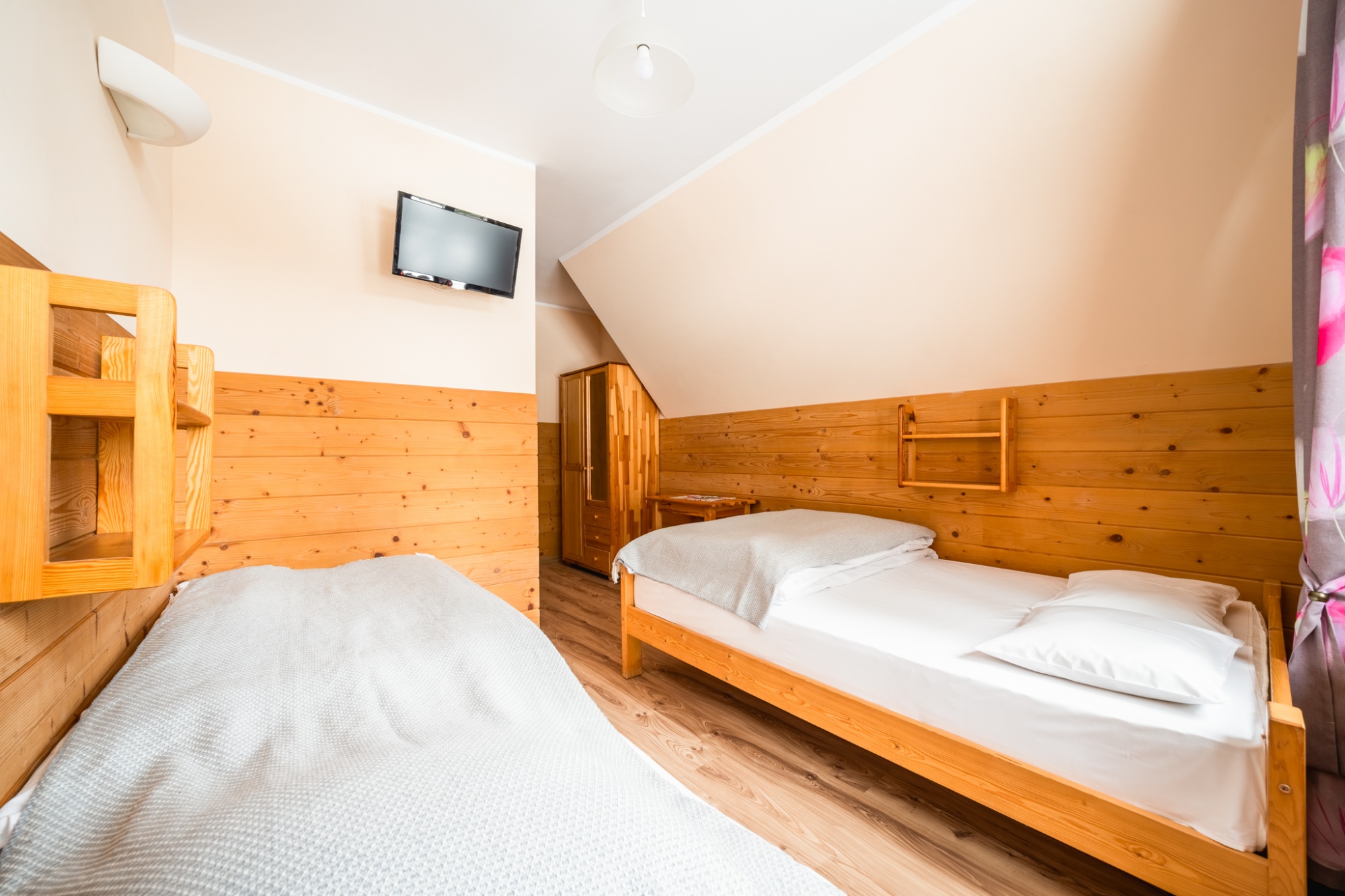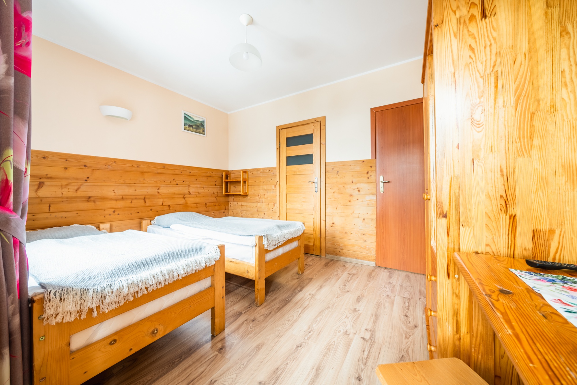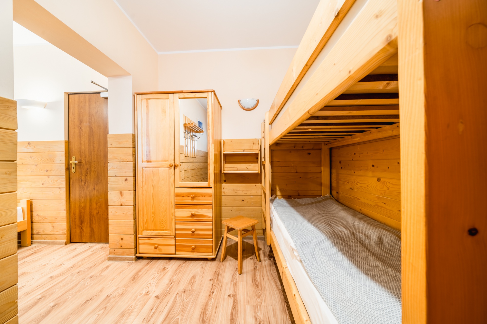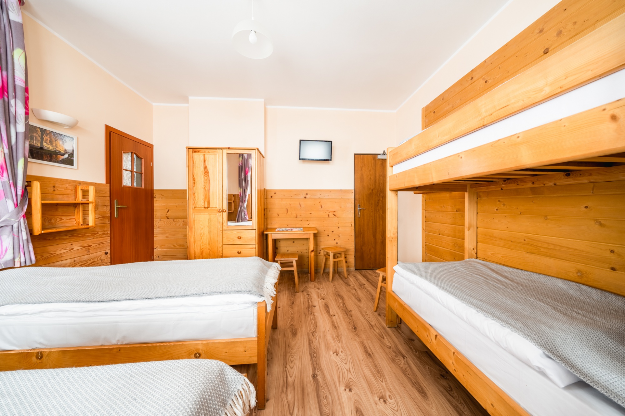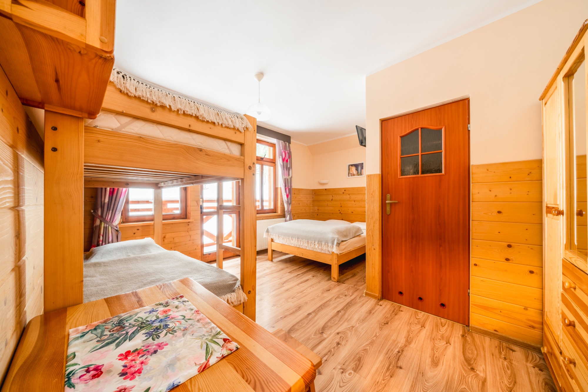 Posiadamy 44 miejsca noclegowye o bardzo wysokim standardzie. Oferujemy pokoje do wynajęcia 2-, 3-, 4- i 5-osobowe. Każdy pokój oferuje przytulne wnętrze wykończone drewnem z telewizorem, większość posiada łazienkę. W naszej ofercie noclegowej jest również kilka miejsc w pokojach, bez pełnego węzła higieniczno-sanitarnego.