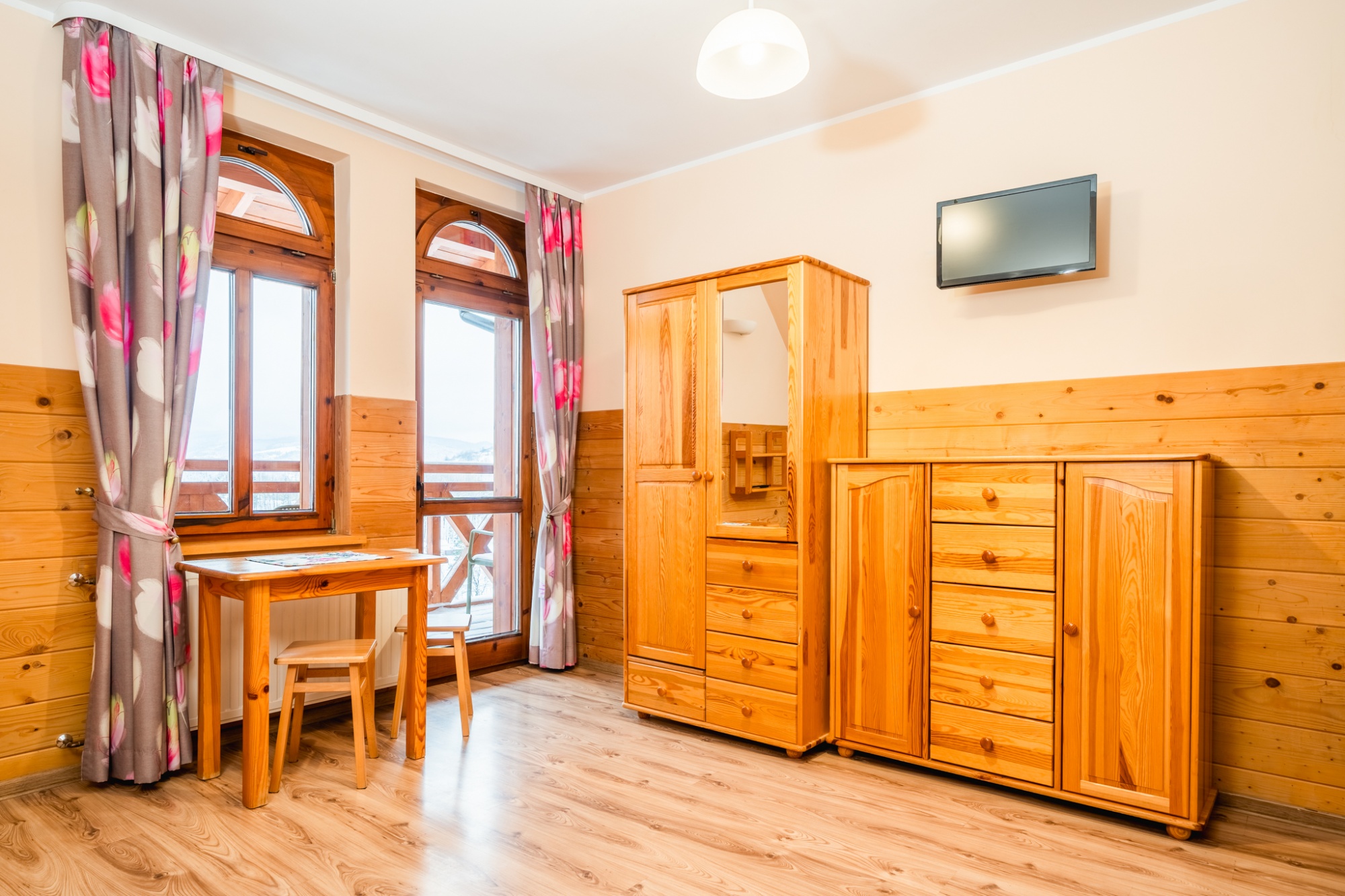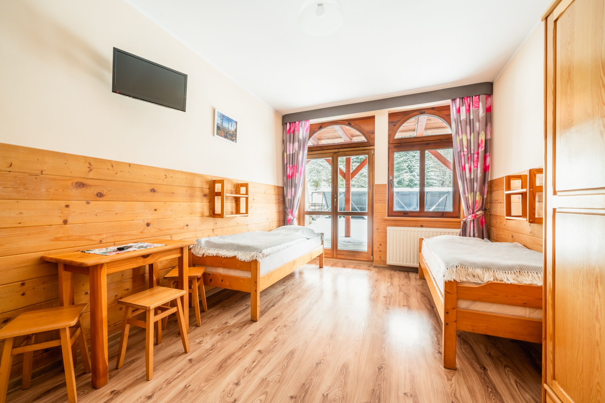 Kameralne wnętrza o drewnianym wykończeniu dają naszym pensjonariuszom poczucie bezpieczeństwa i domowego ciepła. Osoby, nastawione na regeneracyjny relaks i wyjątkowe wczasy, połączone z pysznym wyżywieniem z dala od miejskiego zgiełku znajdą tu to, czego najbardziej potrzebują… - spokój, ciszę, przepiękne górskie widoki oraz bliski kontakt z naturą i świeże powietrze. To przede wszystkim idealne miejsce na udany wypoczynek dla rodzin z dziećmi, czy wczasy z przyjaciółmi. Dodatkowo, kilka razy w roku udostępniamy również przestrzeń, przeznaczoną na imprezy integracyjne dla firm.