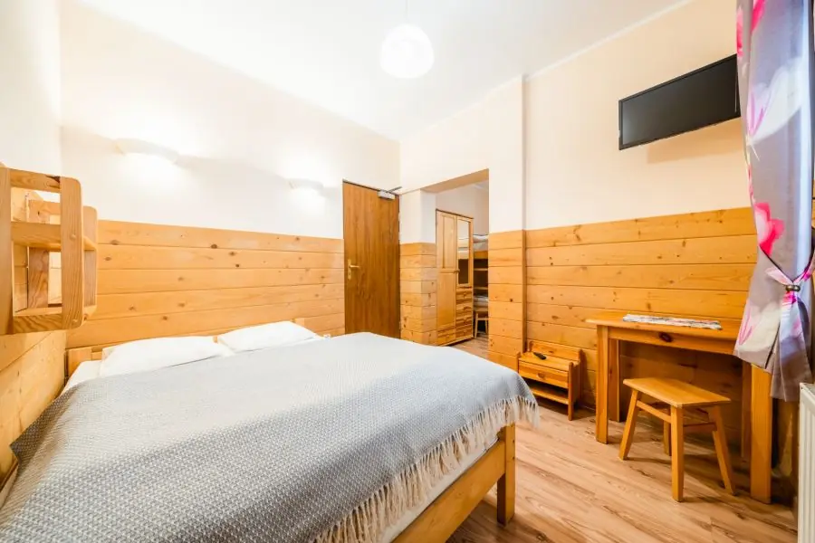 Posiadamy 44 miejsca noclegowye o bardzo wysokim standardzie. Oferujemy pokoje do wynajęcia 2-, 3-, 4- i 5-osobowe. Każdy pokój oferuje przytulne wnętrze wykończone drewnem z telewizorem, większość posiada łazienkę. W naszej ofercie noclegowej jest również kilka miejsc w pokojach, bez pełnego węzła higieniczno-sanitarnego.