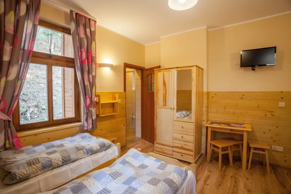 Wszystkie posiadają łazienki, a większość z nich wyposażona jest również w balkony lub w duży taras. Dzięki temu mogą Państwo zażywać kąpieli słonecznych i rozkoszować się pięknym krajobrazem. Z okien schroniska rozciągają się zapierające dech w piersiach widoki na szczyt Trzech Koron, Czerwony Klasztor oraz przełom Dunajca.