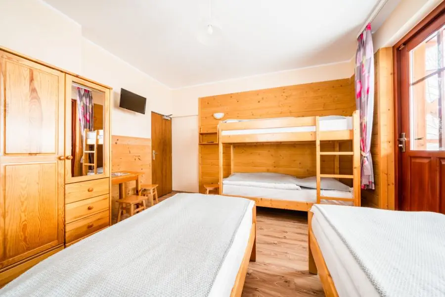 Posiadamy 44 miejsca noclegowye o bardzo wysokim standardzie. Oferujemy pokoje do wynajęcia 2-, 3-, 4- i 5-osobowe. Każdy pokój oferuje przytulne wnętrze wykończone drewnem z telewizorem, większość posiada łazienkę. W naszej ofercie noclegowej jest również kilka miejsc w pokojach, bez pełnego węzła higieniczno-sanitarnego.